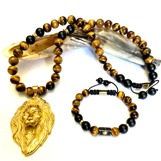 XL Tiger Eye Premium Lion Necklace & Bracelet Set